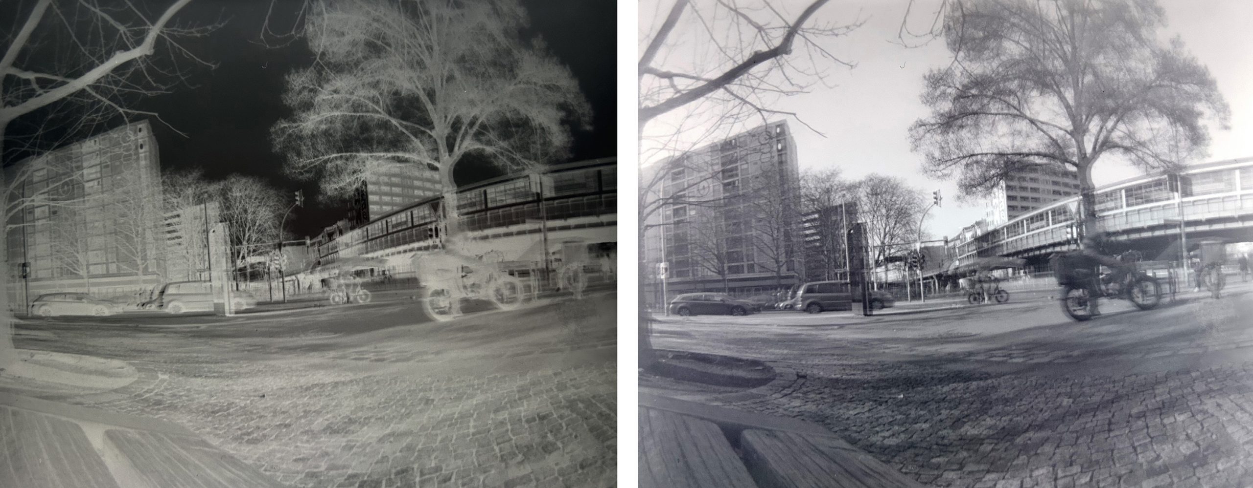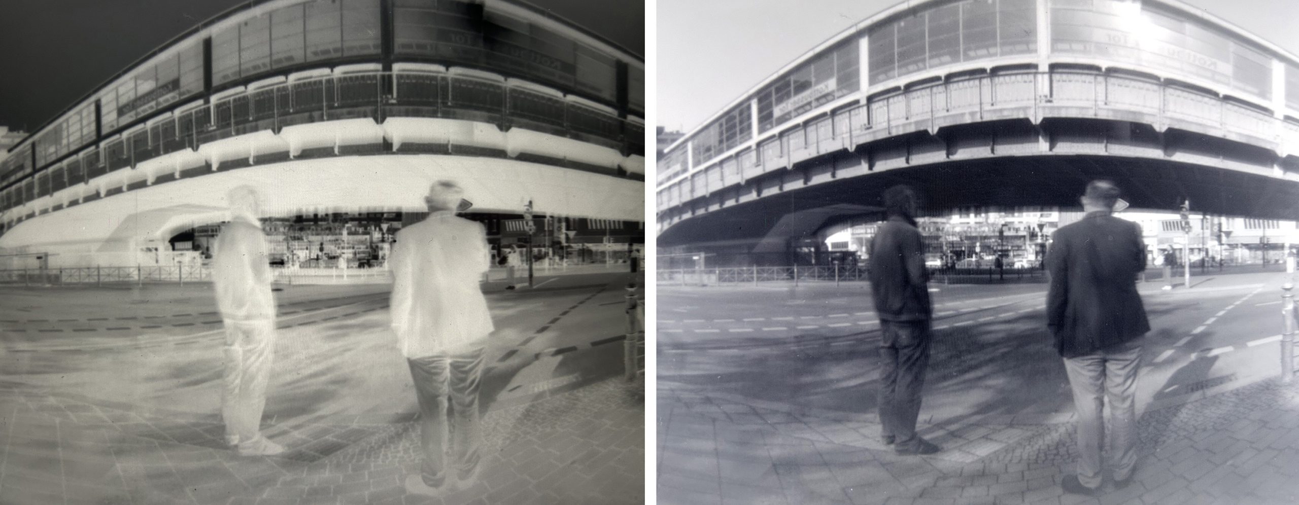 I used two different Illy cameras with different sized holes! Two different apertures (260 and 533) which results in – under bright sunshine condition – exposure times of 2 seconds and 10 seconds.