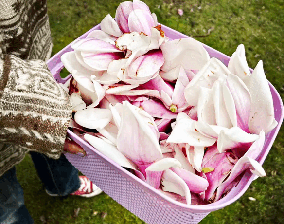We filmed two film cassettes (black & white Kodak TriX film) and, on the second day of the workshop, developed them with fruit and magnolia blossom soup that we’d chopped and cooked together! Deliciously fragrant fun! And a powerful developer!