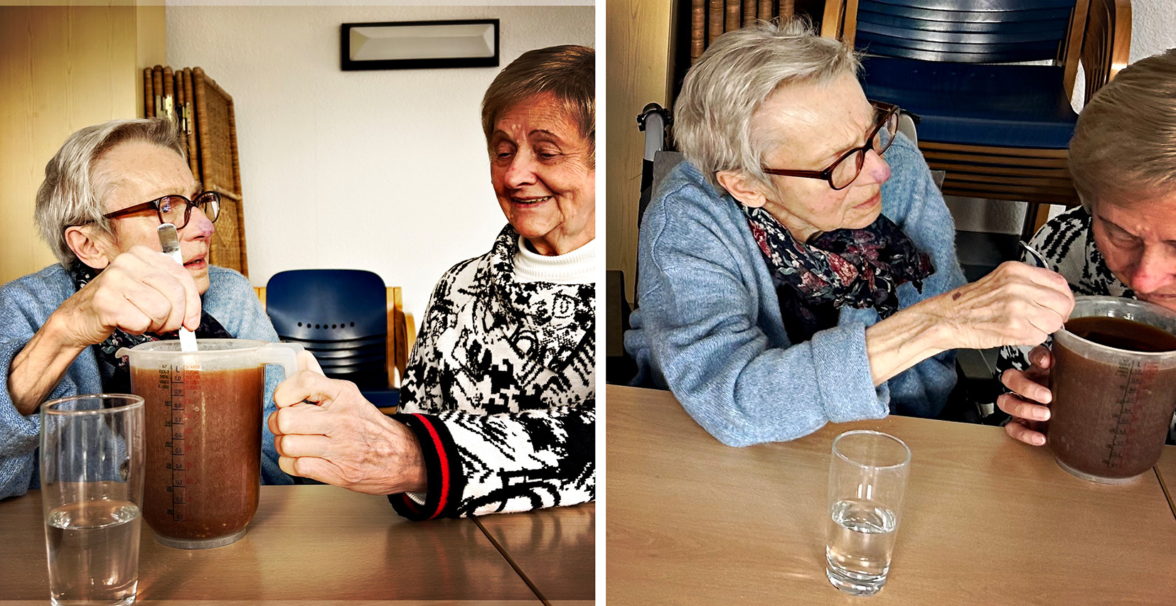 It was exhausting but brilliant. We had little time (they get tired quickly) and the weather was absolutely dreadful: cold and rainy. Nevertheless, the ladies were lovely; they were really keen to do something out of the ordinary, put on their hoods and hats, and came out with us to the nearby park.